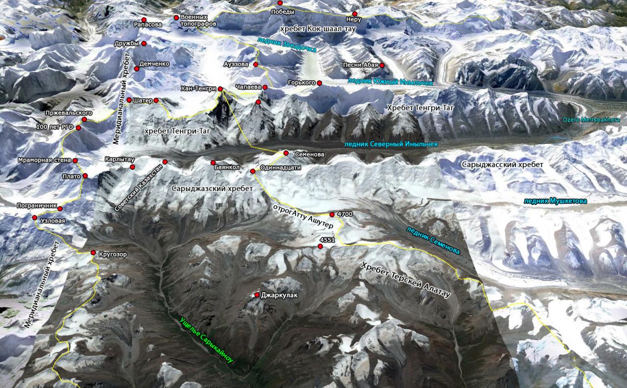 Схема хребтов Центрального Тянь-Шаня. Составлена А.Колокольниковым.