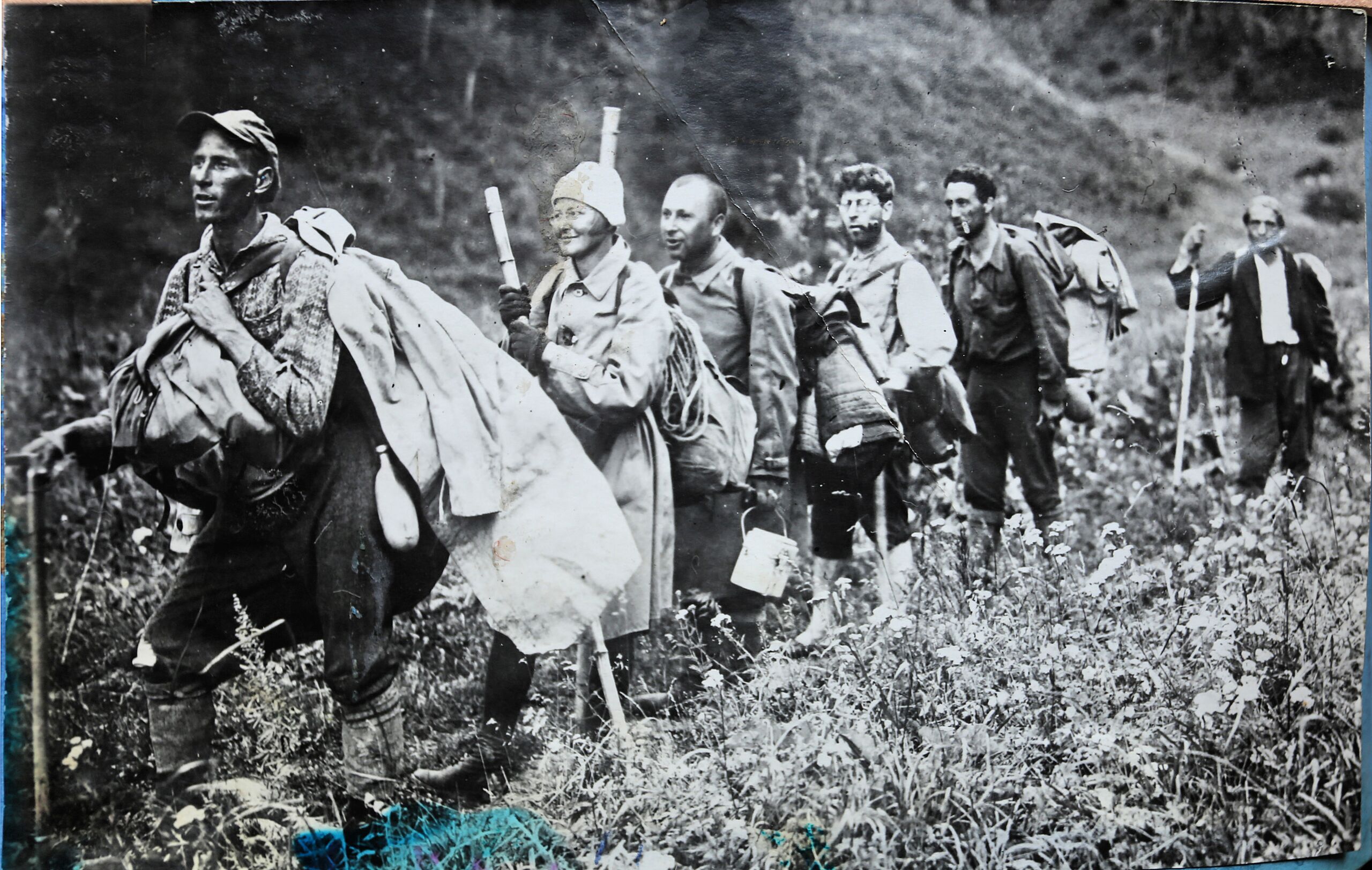 Возвращение с 3-го восхождения на Малоалматинский пик. Г.И.Белоглазов, Н.В.Стукова, О.Д.Дунаевский при подходе к Медео. Фото Ф.Л.Савина, 1931 год.